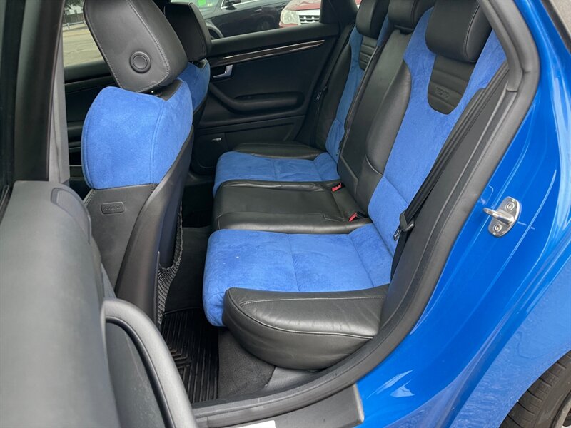 Introducing the 2008 Audi S4 quattro - a premium sedan that offers an impressive blend of performance, luxury, and comfort. This particular model comes equipped with optional Alcantara seating inserts and heated rear seats, making for a truly upscale driving experience.