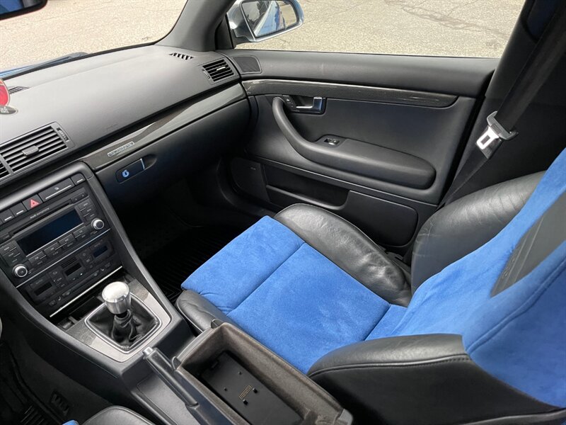 Under the hood, this Audi S4 quattro is powered by a 4.2-liter V8 engine that produces 340 horsepower and 302 lb-ft of torque, paired with a six-speed manual transmission. The quattro all-wheel-drive system provides exceptional handling and traction, making for a thrilling driving experience.