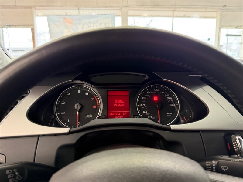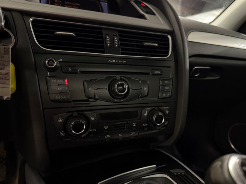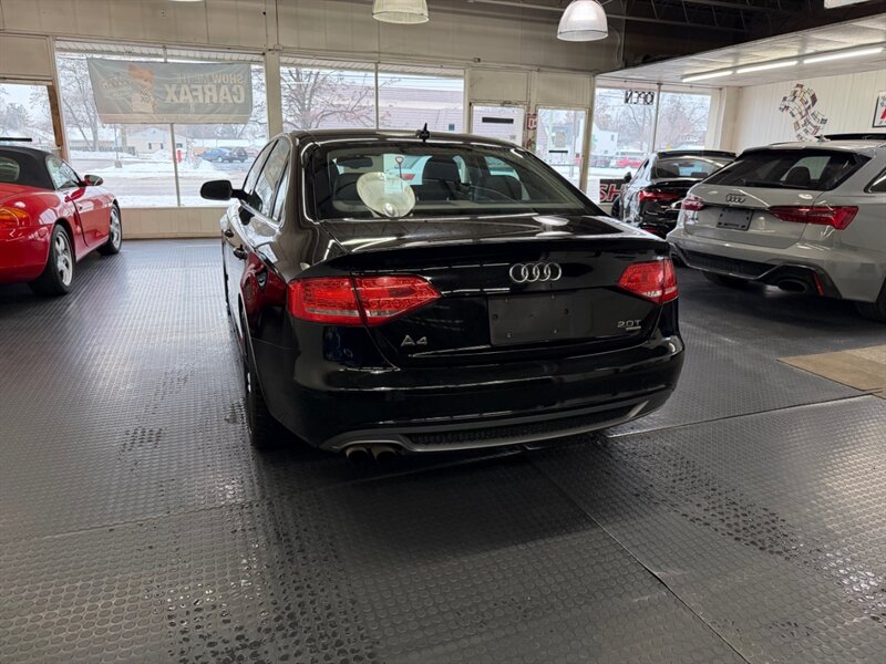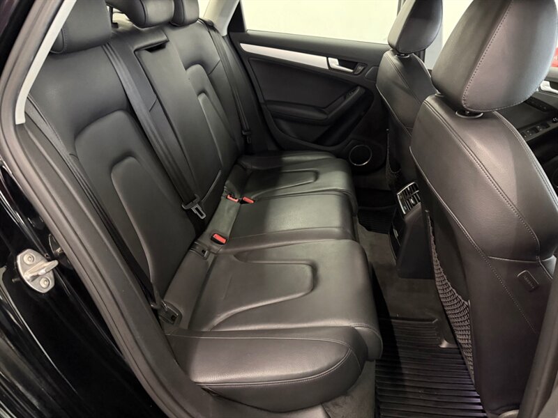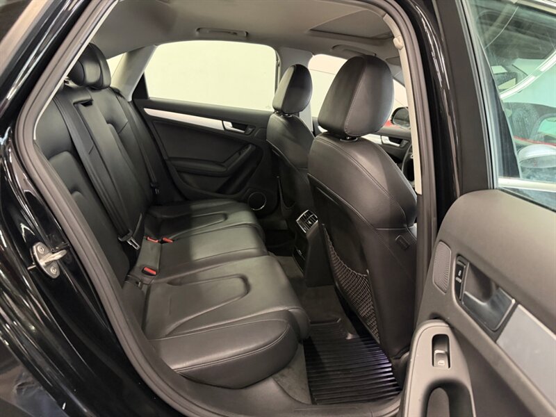 2012 Audi A4 2.0T quattro Premium Plus in Brilliant Black with Black leather interior. Powered by a 2.0L turbocharged I4 producing 211 hp and 258 lb-ft and equipped with Audi quattro all-wheel drive. Factory features include leather seating, heated power front seats with driver memory, dual-zone automatic climate control, power sunroof, xenon HID headlights with LED daytime running lights, alloy wheels, cruise control, steering-wheel audio controls, Bluetooth hands-free, Audi MMI infotainment (CD/AUX), power windows/locks, remote keyless entry, ABS, stability/traction control and full airbags. Optional Bang & Olufsen sound system and Audi Advanced Key are included. Below 137,000 miles (averaging under 10,000 miles/year), EPA-rated 21 MPG city / 31 MPG highway, excellent overall condition with a clean CARFAX.