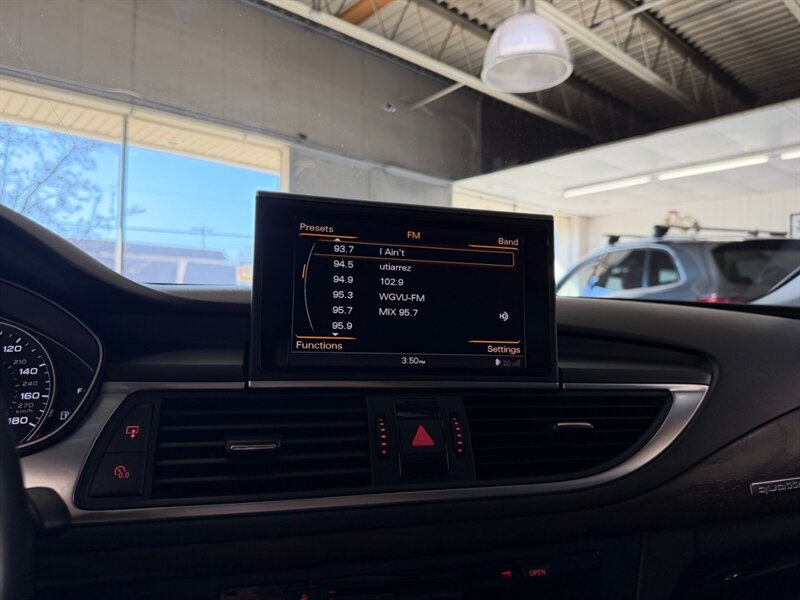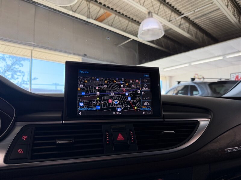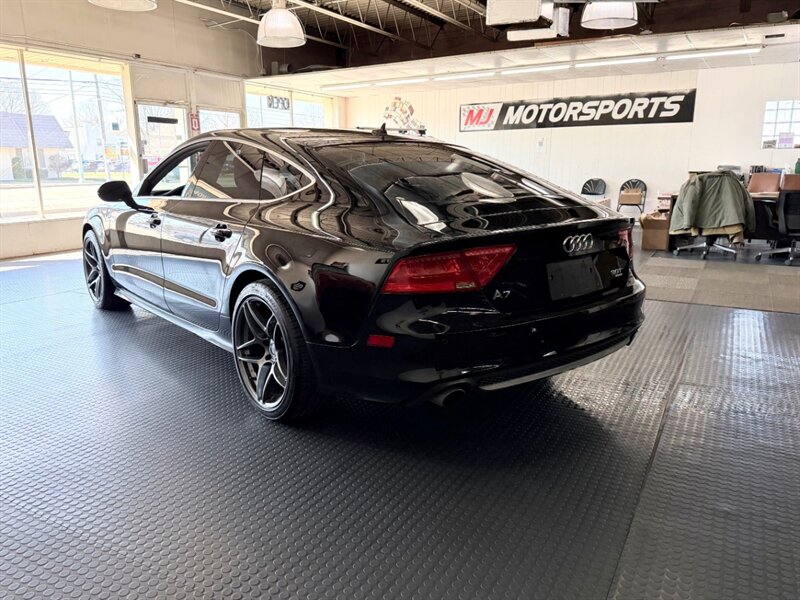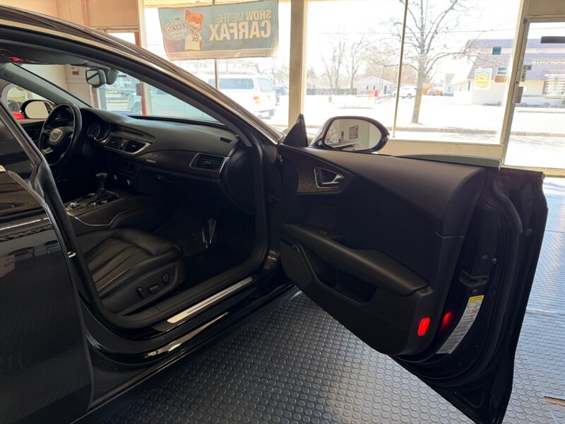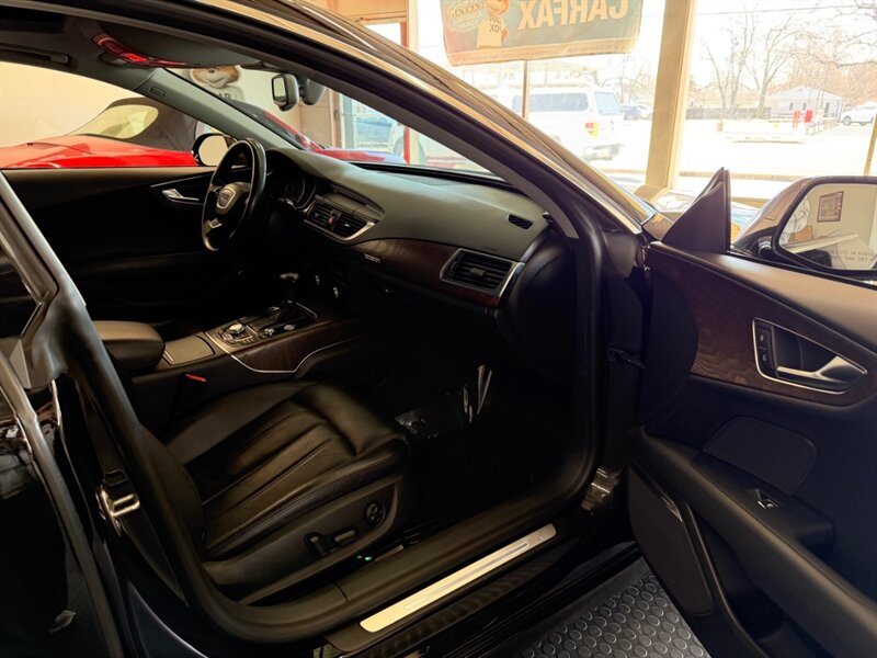 2013 Audi A7 3.0T quattro Prestige in Brilliant Black with Black leather interior, powered by a supercharged 3.0-liter V6 and seven-speed automatic, rated 18 MPG city / 28 MPG highway. Factory equipment includes quattro all-wheel drive, panoramic sunroof, power/heated front seats with memory, leather upholstery, MMI Navigation Plus with Bluetooth and rearview camera, Bang & Olufsen premium audio, keyless start/advanced key, dual-zone automatic climate control, power liftgate, xenon headlights with LED daytime running lights, front/rear parking sensors and a full safety suite (ABS, traction and stability control, multiple airbags). Vehicle is in excellent overall condition with a clean CARFAX.