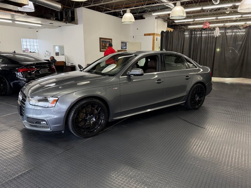 Step into a beautifully maintained 2014 Audi A4 2.0T quattro Premium Plus — a refined, fun-to-drive compact luxury sedan finished in Monsoon Gray Metallic with striking Black and Cognac leather interior and Walnut Dark Brown wood inlays. Powered by the efficient 2.0L turbocharged inline-4 that delivers 220 hp and 258 lb-ft of torque, this A4 combines Audi’s confident quattro all-wheel-drive traction with composed handling thanks to the Sport Package. With fewer than 84,000 miles (averaging under 7,000 miles per year) and excellent overall condition, it’s an attractive, well-cared-for example.