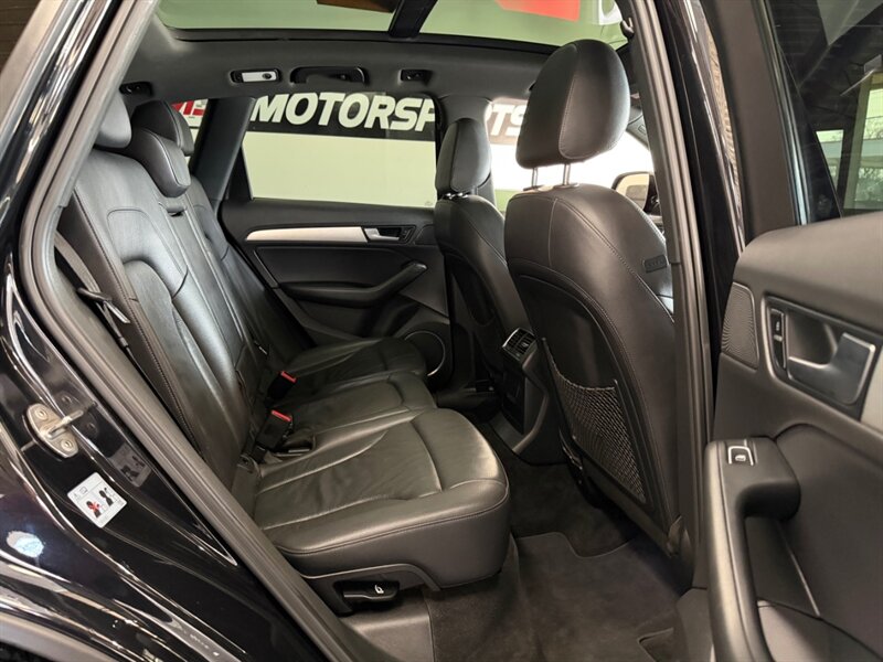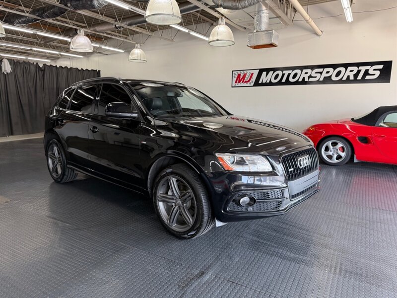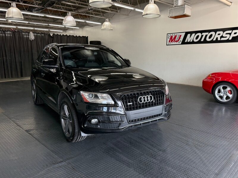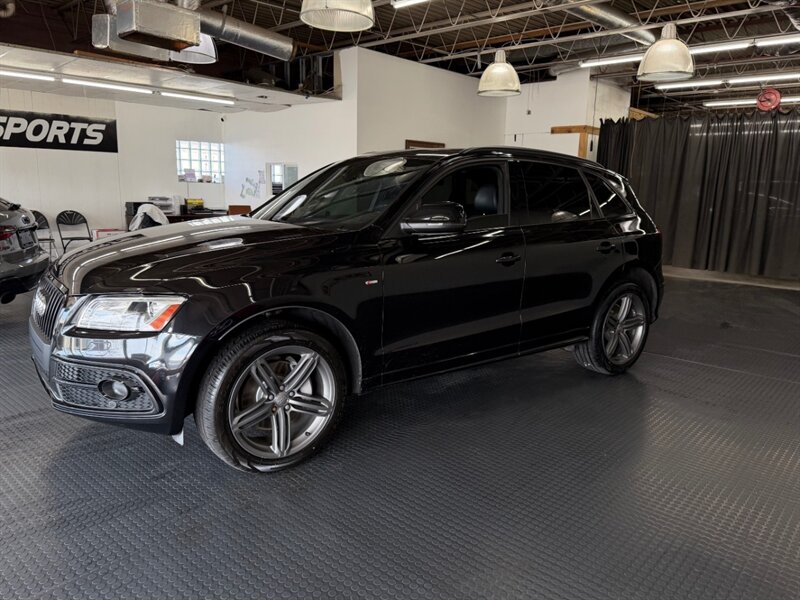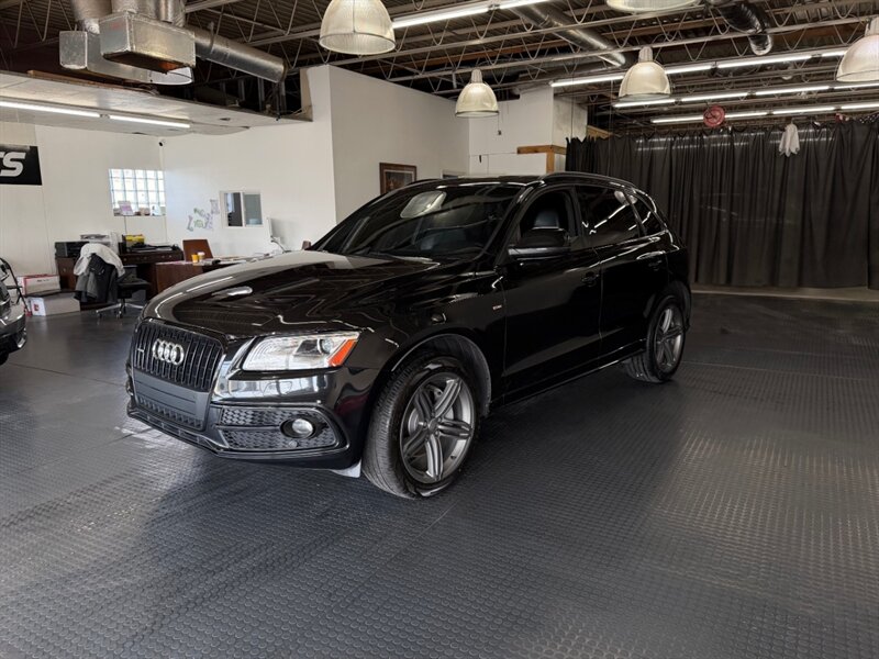 2014 Audi Q5 3.0 TDI quattro Premium Plus in Brilliant Black with Black leather interior. Powered by a 3.0L diesel turbo V6 producing 240 hp and 428 lb-ft, paired with quattro all-wheel drive and automatic transmission; EPA-rated 24 MPG city / 31 MPG highway. Includes S line Plus Package, Sport Interior Package and the optional Bang & Olufsen Advanced Sound System. Factory equipment includes leather seating surfaces, power-adjustable heated front seats with driver memory, dual-zone automatic climate control, power liftgate and roof rails, alloy wheels, Audi MMI infotainment with Bluetooth and auxiliary inputs, cruise control and steering-wheel controls, ABS with stability and traction control, multiple airbags and tire-pressure monitoring. Vehicle is in excellent overall condition.
