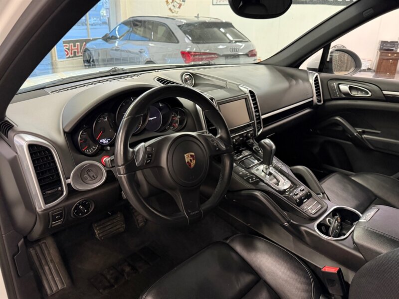 2014 Porsche Cayenne Diesel in White with Black leather interior, powered by a 3.0L turbo diesel V6 producing 240 hp and 406 lb-ft of torque; EPA-rated 20 MPG city / 29 MPG highway. This example includes the Premium Package Plus and factory-installed options: BOSE Surround Sound, Heated Leather Sport Steering Wheel, Power Steering Plus, High Gloss Black Exterior Package, Moonroof, Black Roof/Drip Rails, 18-Way Adaptive Sport Seats with Memory Package, Air Suspension with Porsche Active Suspension Management (PASM), 19" Cayenne Design wheels, and thermally/noise insulated privacy glass. Factory-standard equipment includes Porsche’s all-wheel-drive drivetrain and durable diesel powertrain, a comprehensive safety suite (ABS, traction and stability control, front/side/curtain airbags, tire pressure monitoring), power conveniences (power windows, mirrors and locks, power-adjustable seats), dual-zone climate control, a driver-focused cockpit with multifunction steering wheel and ergonomic controls, and premium build materials throughout. Vehicle is in excellent overall condition.