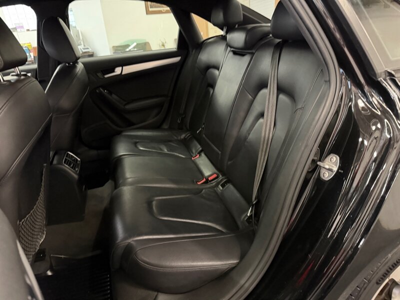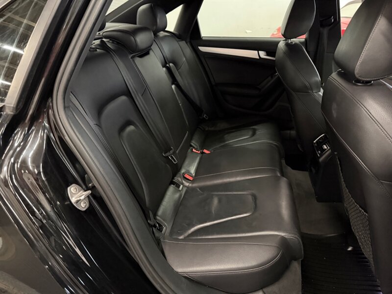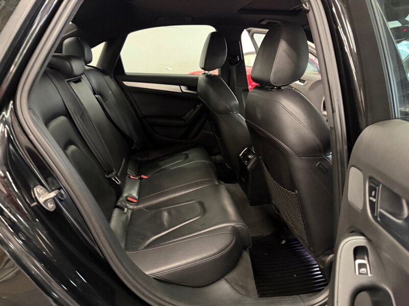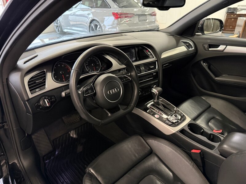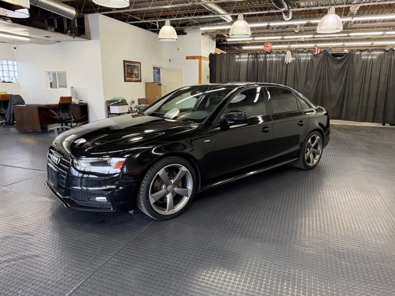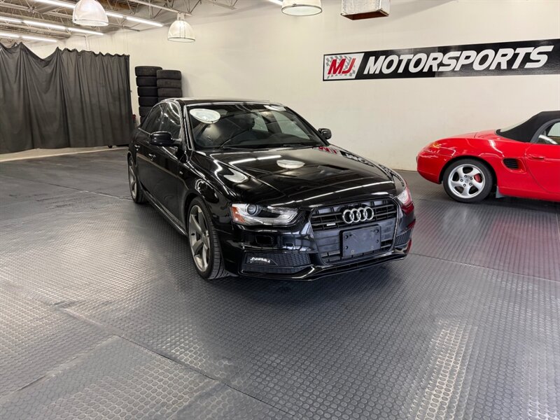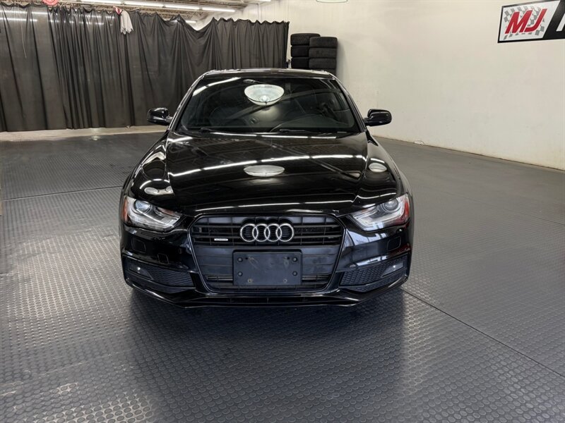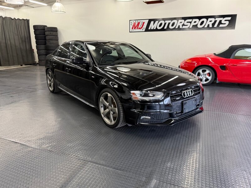 2015 Audi A4 2.0T quattro Premium Plus in Brilliant Black with Black leather interior — excellent overall condition. Powered by a 2.0L Flex Fuel turbocharged I4 producing 220 hp and 258 lb-ft with Audi’s quattro all-wheel-drive. Factory equipment includes full leather seating, heated and power-adjustable front seats with lumbar support, dual-zone automatic climate control, power sunroof, Xenon headlights with LED daytime running lights, alloy wheels, keyless start/entry, cruise control, steering-wheel audio/phone controls and an Audi MMI infotainment system with Bluetooth, USB/AUX inputs and HD radio. Sport Plus Package adds sport-tuned suspension, sport styling and paddle shifters; Technology Package adds navigation, expanded MMI functionality and camera/advanced connectivity features.