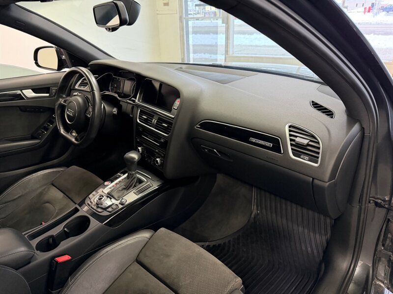 - S line Competition Plus PackageIncludes black diffuser surround and exterior mirror housings, brilliant black door sills blades (beneath door), S line competition plus bumpers, rear lip spoiler, 18 inch Audi sport 10-Y spoke gloss black wheels, leather/alcantara interior with S line embossing, S line steering wheel badge, 3-spoke flat bottom steering wheel (with shift paddles on automatic), Audi parking system with rearview camera (front and rear sensors), black cloth headliner, and piano black inlays.