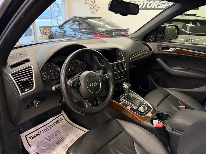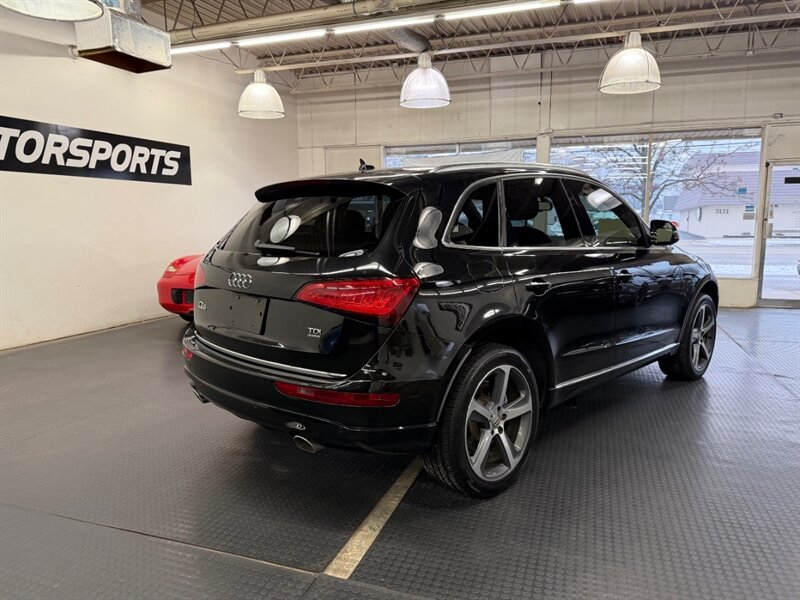 2015 Audi Q5 3.0 quattro TDI Prestige in Brilliant Black with Black leather interior. Powered by a 3.0L turbo Diesel V6 producing 240 hp and 428 lb-ft, paired with quattro all-wheel drive and an 8-speed Tiptronic automatic — rated 24 MPG city / 31 MPG highway. Prestige trim with Luxury and Sport Interior Packages includes leather seating, heated front seats, power-adjustable seats with driver memory, panoramic sunroof, power liftgate, dual-zone automatic climate control, MMI infotainment with navigation, Bluetooth/USB connectivity, rearview camera and front/rear parking sensors, Xenon headlights with LED daytime running lights, alloy wheels and a full complement of ABS, traction/stability control and airbags. Vehicle is in excellent overall condition and has a clean CARFAX.