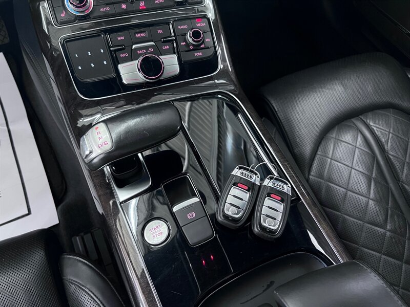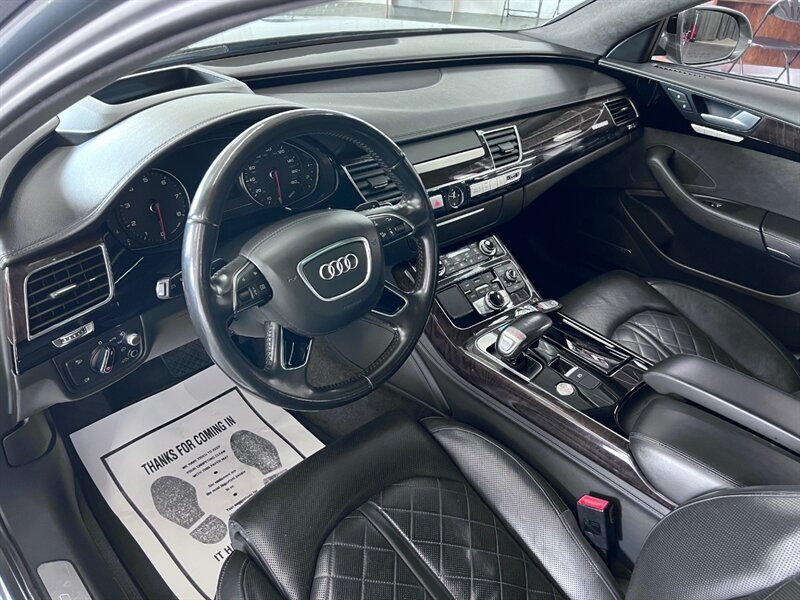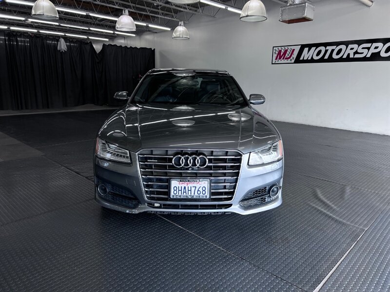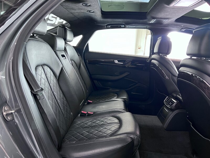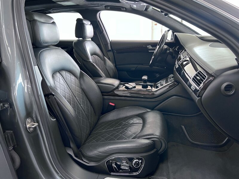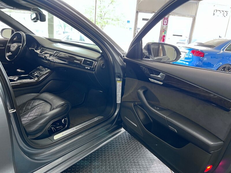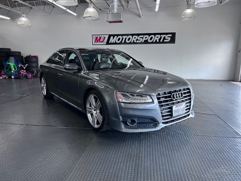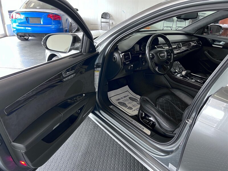 Presenting the luxurious 2016 Audi A8 L 4.0T quattro Sport in Monsoon Gray Metallic with a sophisticated Black Alcantara/premium leather interior. Equipped with a robust 4.0L Twin Turbo V8 engine delivering 450hp and 444ft. lbs. of torque, this vehicle offers both power and performance. The factory default features of this model ensure a comfortable and convenient driving experience, including advanced technology, premium materials, and innovative design elements. With optional packages such as the Cold Weather Package, Driver Assistance Package, and Dynamic Package, along with the desirable Black Alcantara Headliner, this Audi A8 L Sport is designed to exceed expectations. With a fuel efficiency of 18 MPG in the city and 29 MPG on the highway, this vehicle combines luxury with practicality. Maintained in excellent condition and accompanied by a clean CARFAX report, this Audi A8 L Sport is a remarkable choice for those seeking both style and substance.