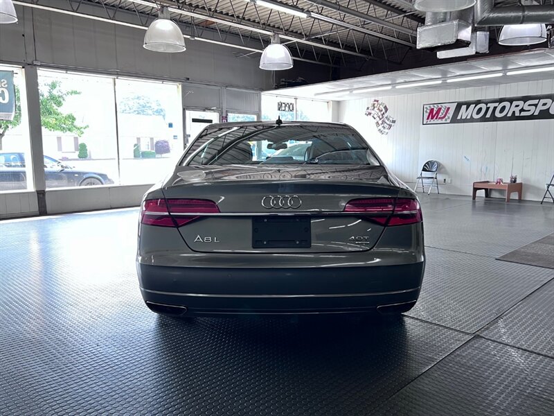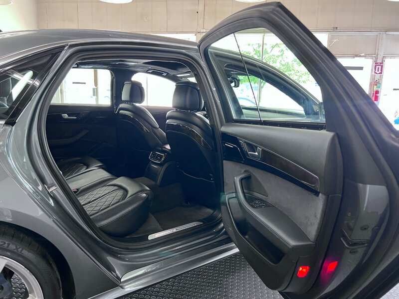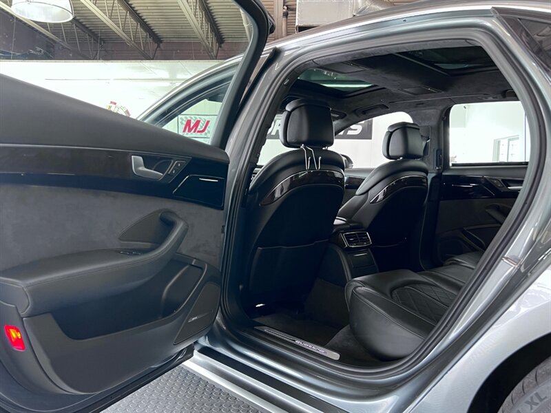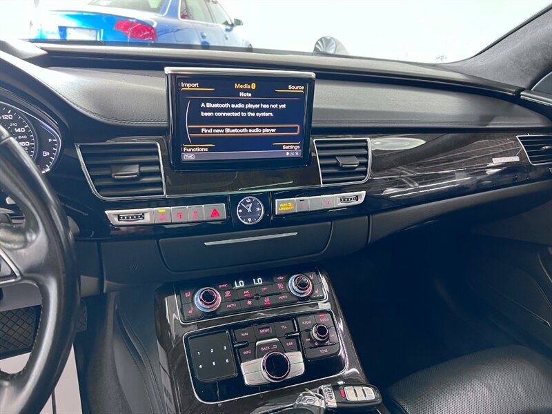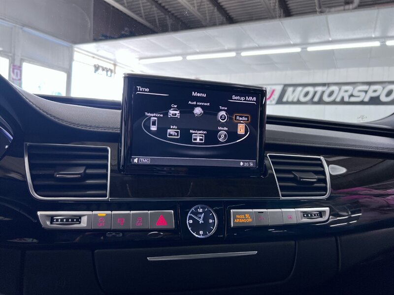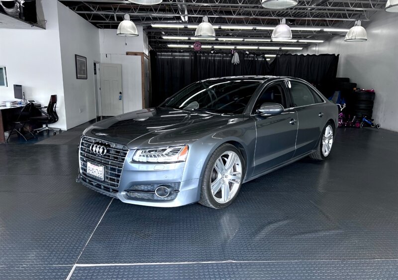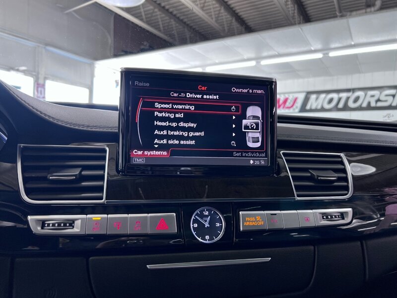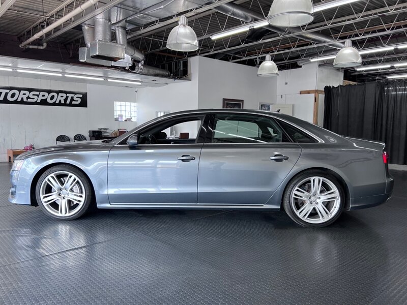 Presenting the luxurious 2016 Audi A8 L 4.0T quattro Sport in Monsoon Gray Metallic with a sophisticated Black Alcantara/premium leather interior. Equipped with a robust 4.0L Twin Turbo V8 engine delivering 450hp and 444ft. lbs. of torque, this vehicle offers both power and performance. The factory default features of this model ensure a comfortable and convenient driving experience, including advanced technology, premium materials, and innovative design elements. With optional packages such as the Cold Weather Package, Driver Assistance Package, and Dynamic Package, along with the desirable Black Alcantara Headliner, this Audi A8 L Sport is designed to exceed expectations. With a fuel efficiency of 18 MPG in the city and 29 MPG on the highway, this vehicle combines luxury with practicality. Maintained in excellent condition and accompanied by a clean CARFAX report, this Audi A8 L Sport is a remarkable choice for those seeking both style and substance.