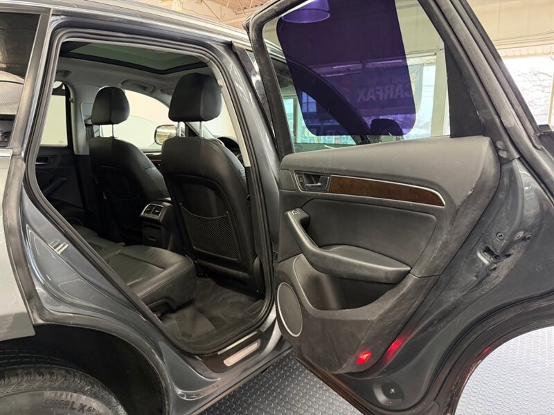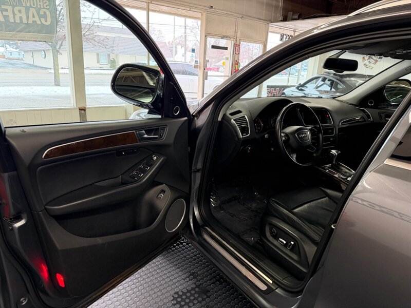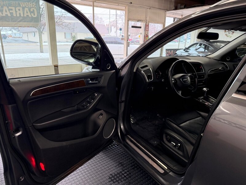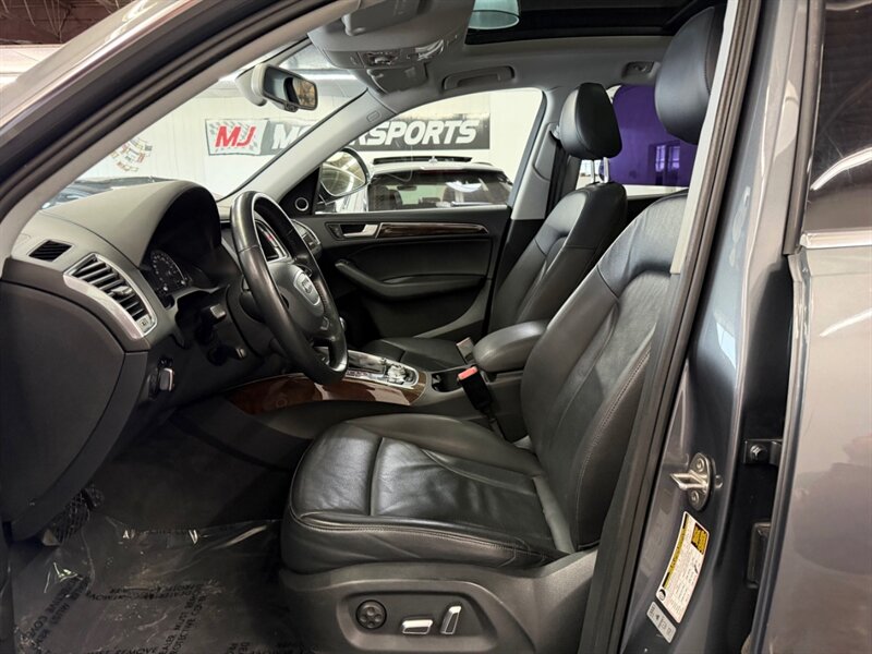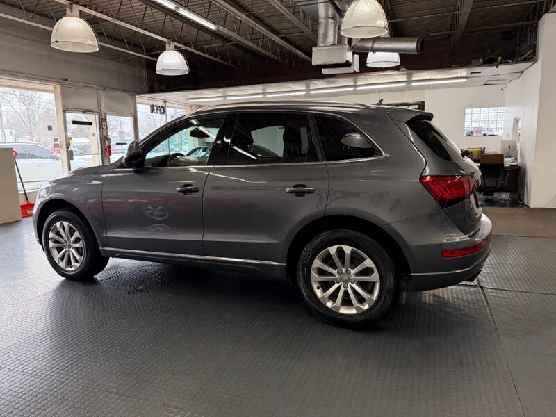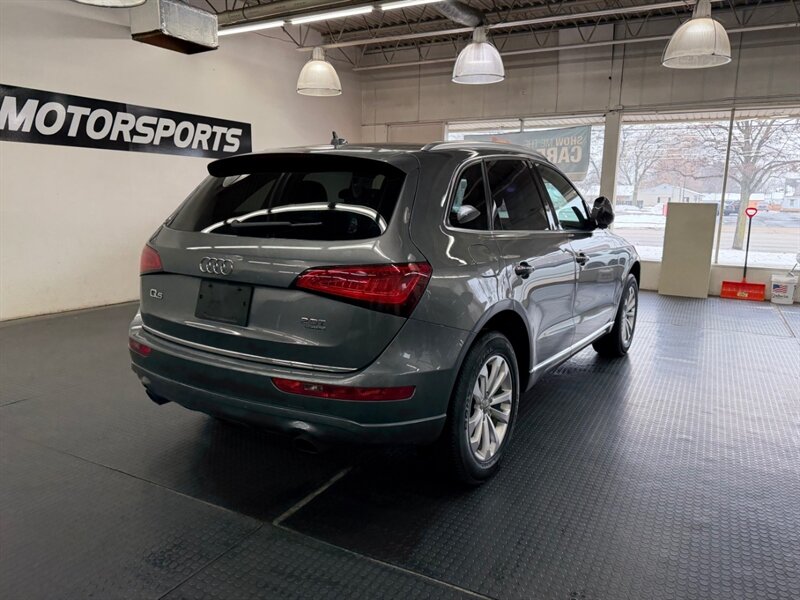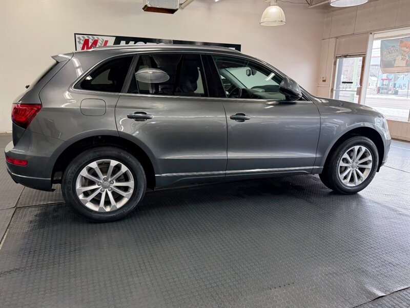 2016 Audi Q5 2.0T quattro Premium Plus finished in Monsoon Gray Metallic with Black leather and Ash Brown Natural Wood interior inlays. Powered by a 2.0L Flex Fuel turbocharged I4 producing 220 hp and 258 lb-ft, this Q5 includes the Technology Package for upgraded navigation and infotainment. Vehicle has good mileage (below 106,000 miles, averaging under 10,000 miles per year), is in excellent overall condition, and has a clean CARFAX.