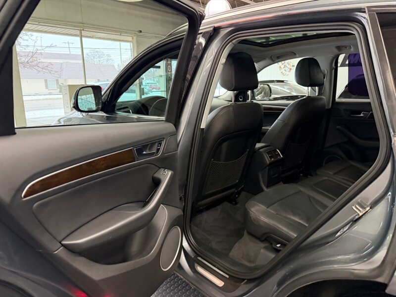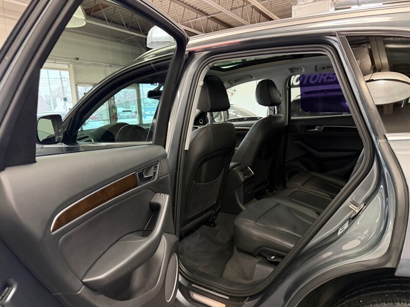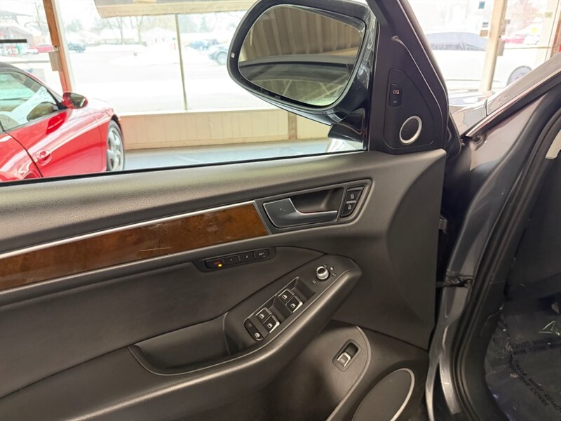 Factory-standard equipment includes quattro all-wheel drive, a smooth automatic transmission, leather seating surfaces, power-adjustable front seats with driver memory and heating, dual-zone automatic climate control, a sunroof, power liftgate, keyless entry and push-button start, the Audi MMI infotainment system with Bluetooth and available navigation, premium audio, rearview camera and parking aids, LED daytime running lights, and a full suite of safety features such as ABS, traction and stability control, multiple airbags and tire pressure monitoring.