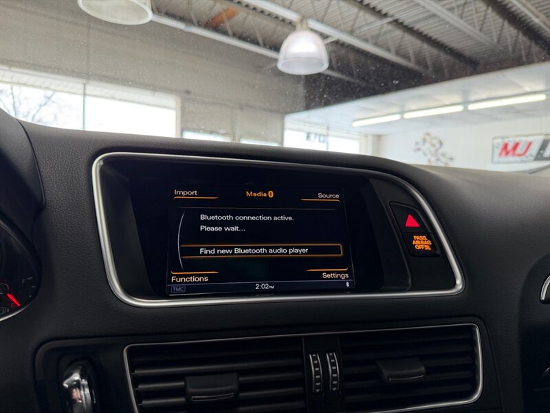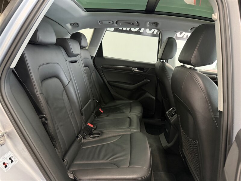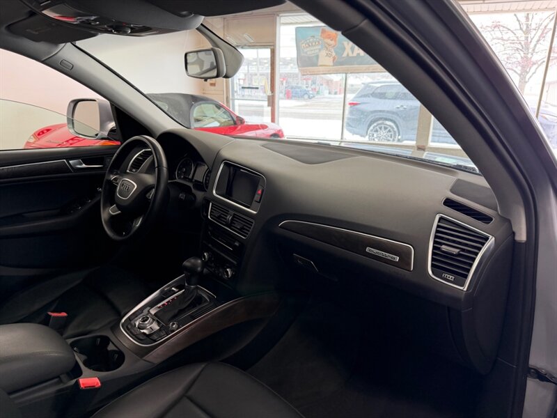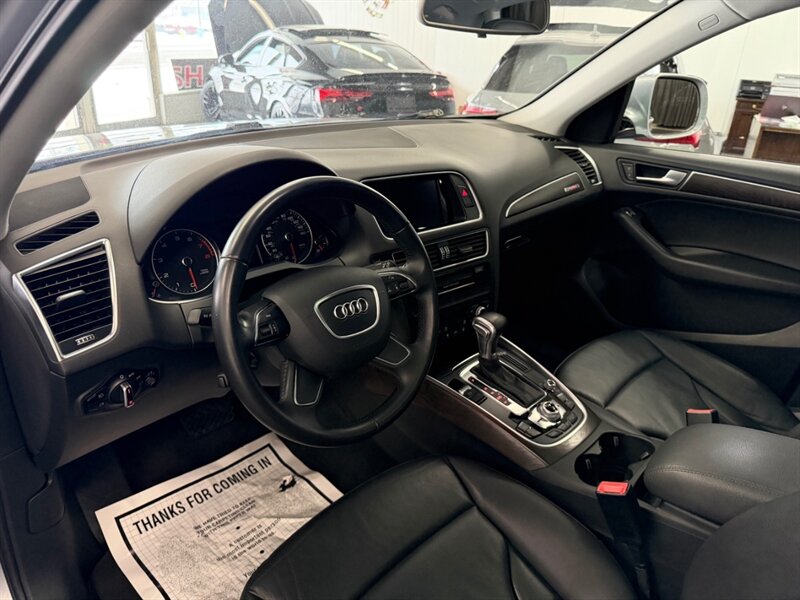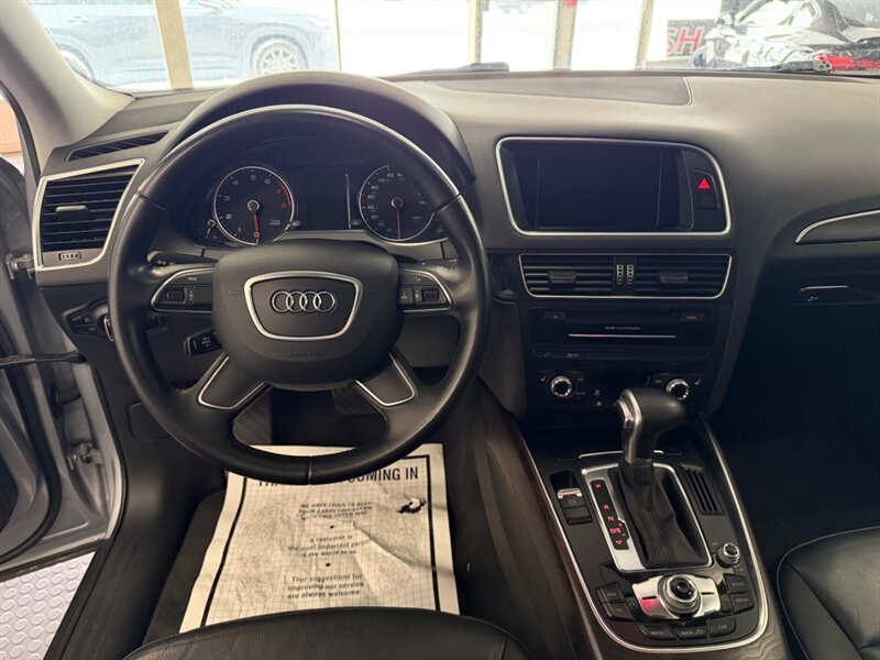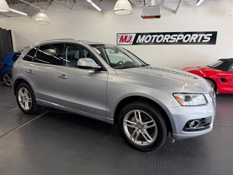 2016 Audi Q5 2.0T quattro Premium finished in Florett Silver Metallic with a Black interior, powered by a 2.0L FlexFuel turbocharged I4 producing 220 hp and 258 lb-ft and Audi’s quattro all-wheel drive. Factory equipment includes the Audi MMI infotainment system (MMI Navigation Plus package installed), Bluetooth and media connectivity, dual-zone automatic climate control, leather seating surfaces with power-adjustable front seats, and full safety systems including ABS, electronic stability and traction control, and multiple airbags. This example also features Ash Brown natural wood interior inlays, Florett Silver Metallic paint and heated front seats as installed options. Vehicle is in excellent overall condition.