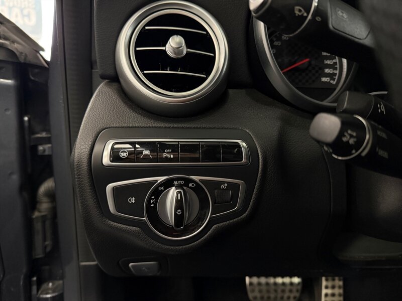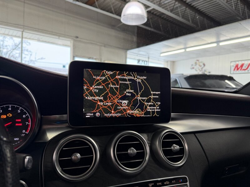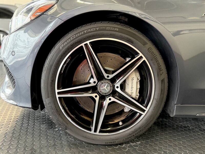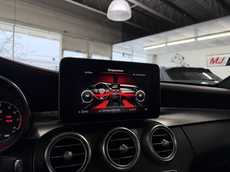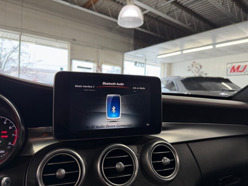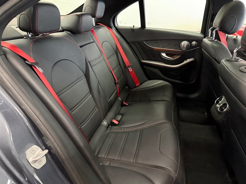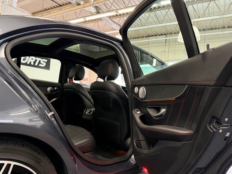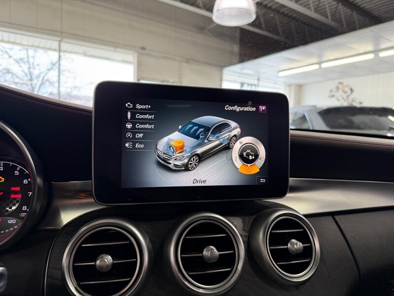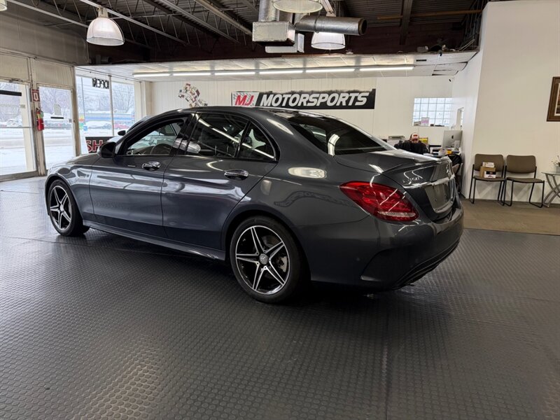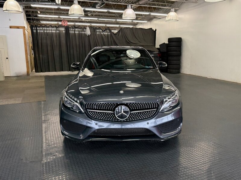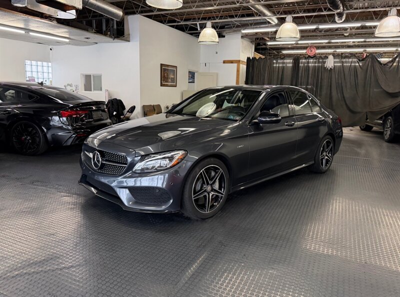 2016 Mercedes-Benz C 450 AMG — 3.0L twin-turbo V6 (362 hp / 384 lb-ft), 4MATIC all-wheel drive with 7-speed automatic transmission. Included packages: Driver Assistance, Lighting, Multimedia, Night, and Premium 2. Optional features included: Steel Grey Metallic paint, Panorama sunroof, PARKTRONIC with Active Parking Assist, rearview camera, Black leather interior with red accents, and heated front seats. Factory standard equipment includes AMG-tuned sport suspension and brakes, AMG styling cues, multi-function steering wheel with paddle shifters, automatic LED running lights, dual-zone automatic climate control, power-adjustable front seats with memory and lumbar support, keyless start/entry, a Mercedes COMAND infotainment interface with Bluetooth/USB connectivity, and a comprehensive safety package (ABS, stability/traction control, multiple airbags, Brake Assist and tire pressure monitoring). Vehicle is in excellent overall condition, under 95,000 miles (averaging <9,000 mi/yr), and rated about 21 MPG city / 29 MPG highway.
