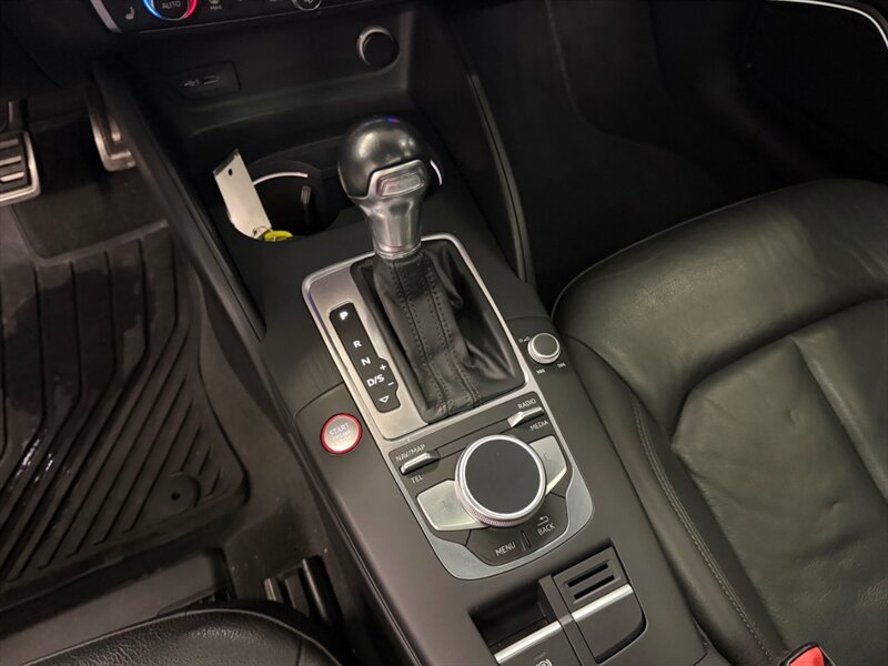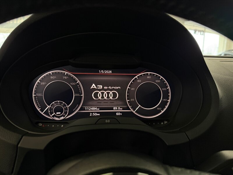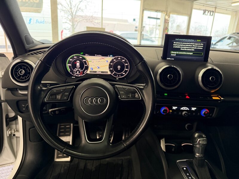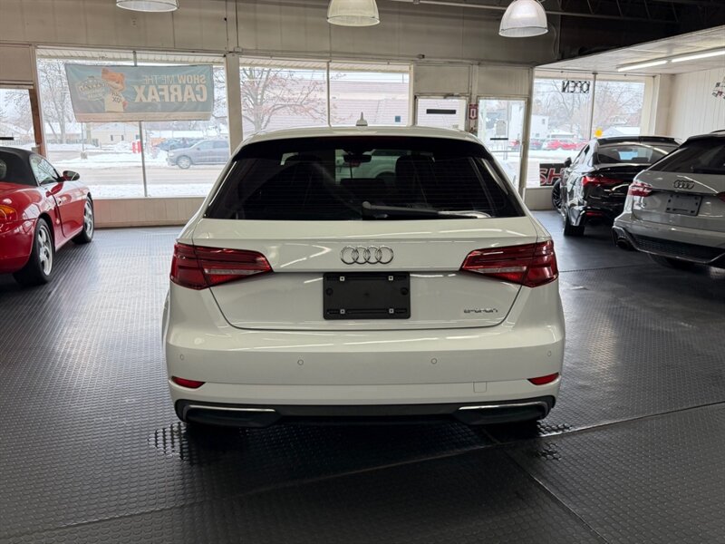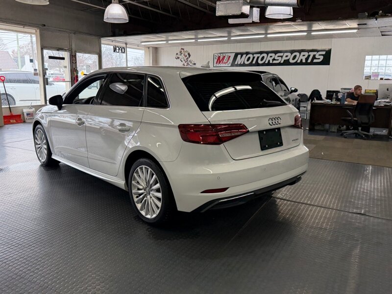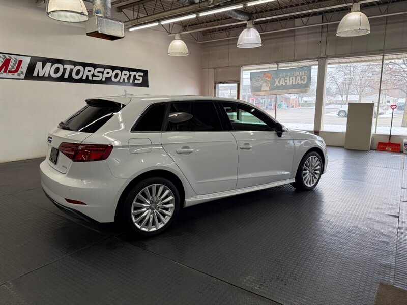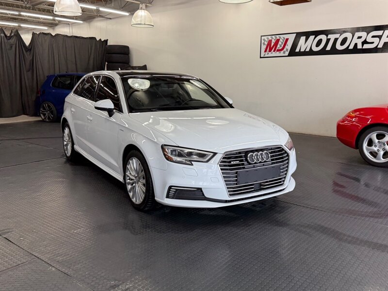 2017 Audi A3 Sportback e-tron 1.4T Prestige in Glacier White Metallic with Black leather interior. Factory equipment includes the plug-in hybrid powertrain pairing a 1.4L turbocharged gasoline engine with an electric motor, leather seating surfaces with heated front seats and power-adjustable front seats (driver memory), dual-zone automatic climate control, and a full Audi MMI infotainment system with navigation, Bluetooth and USB connectivity. Convenience and comfort features include keyless entry/ignition, steering-wheel audio and phone controls, power windows/locks, alloy wheels and folding rear seats for additional cargo flexibility. Safety and driver aids from the factory include ABS, traction and stability control, multiple airbags, tire pressure monitoring, rearview camera and front/rear parking sensors; exterior lighting is finished with Audi LED elements. Rated at 33 MPG city and 36 MPG highway, this vehicle is in excellent overall condition with a clean CARFAX.