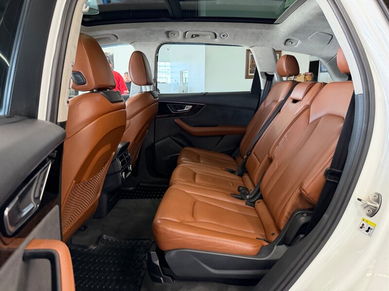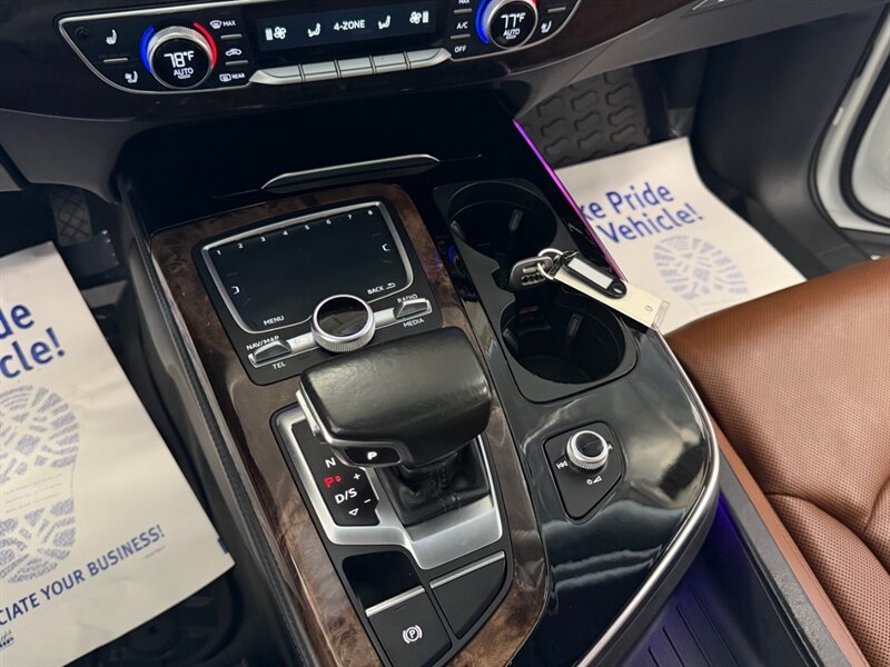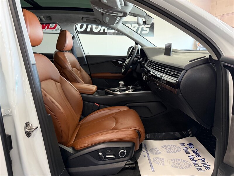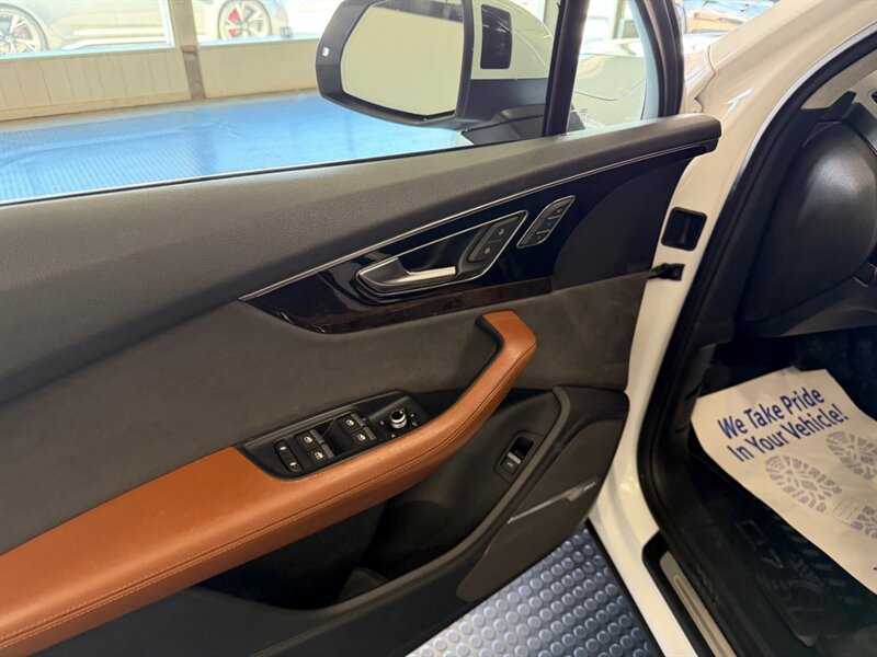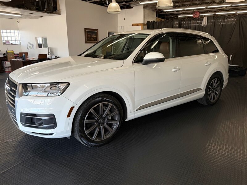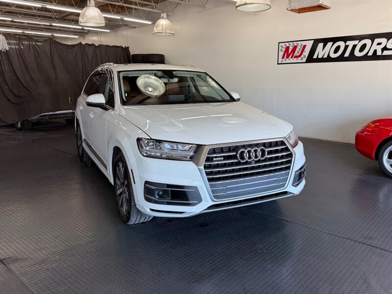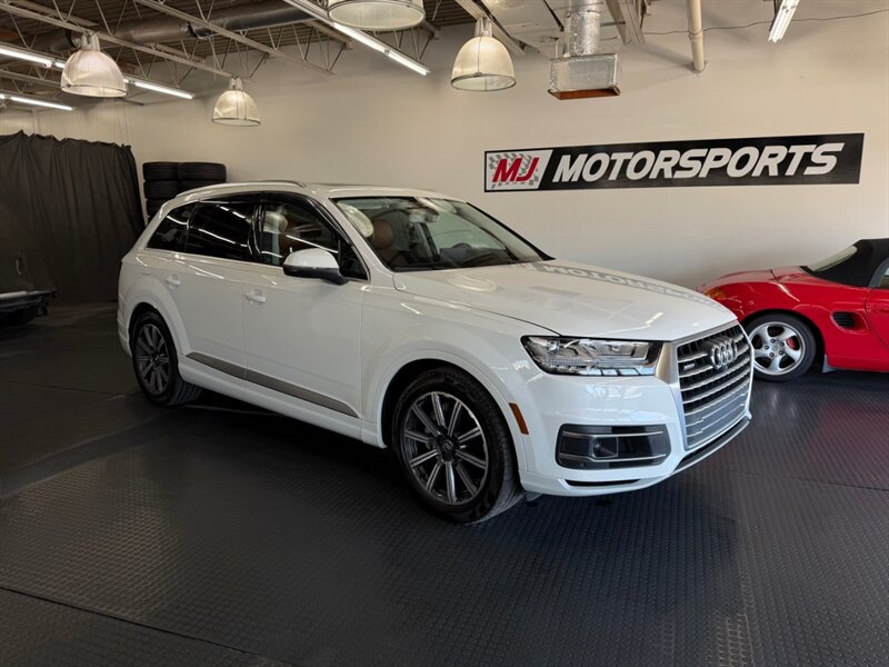 2017 Audi Q7 3.0T quattro Prestige — Carrara White exterior with Cedar Brown Alcantara and premium leather interior. Powered by a 3.0L supercharged V6 producing 333 hp and 325 lb-ft of torque, matched to an 8-speed automatic transmission and Audi quattro all-wheel drive. This Q7 achieves an EPA rating of approximately 19 MPG city and 25 MPG highway. The vehicle is in excellent overall condition and has a clean CARFAX.
