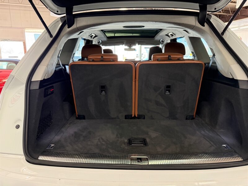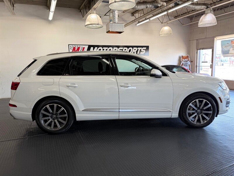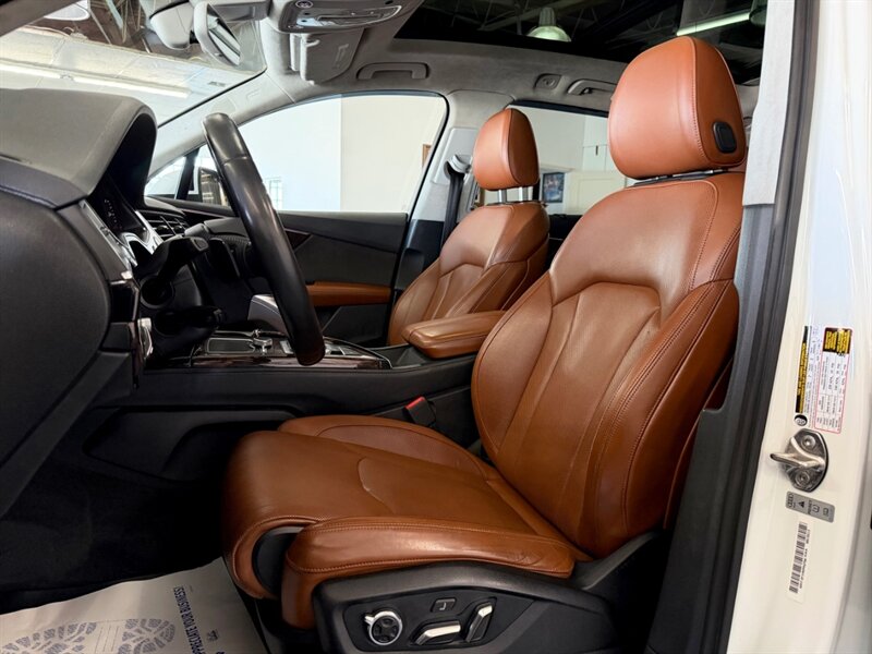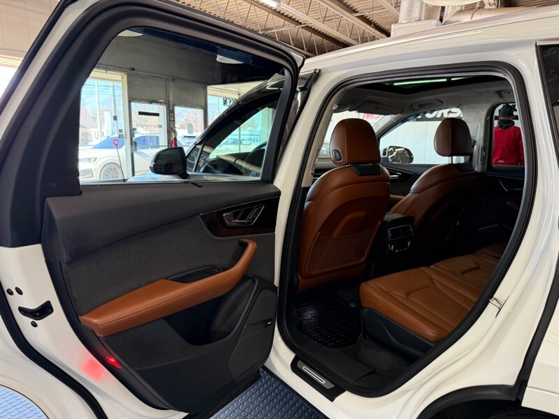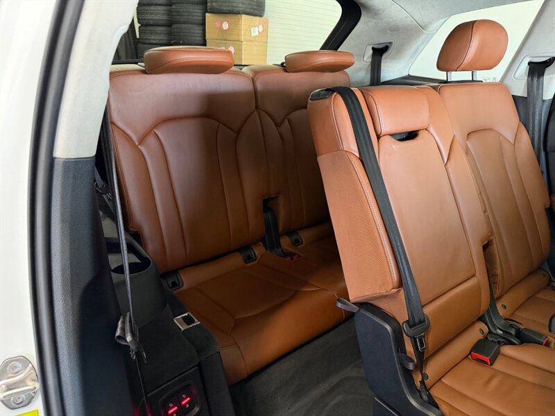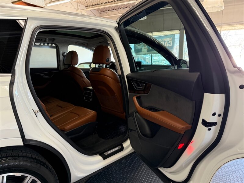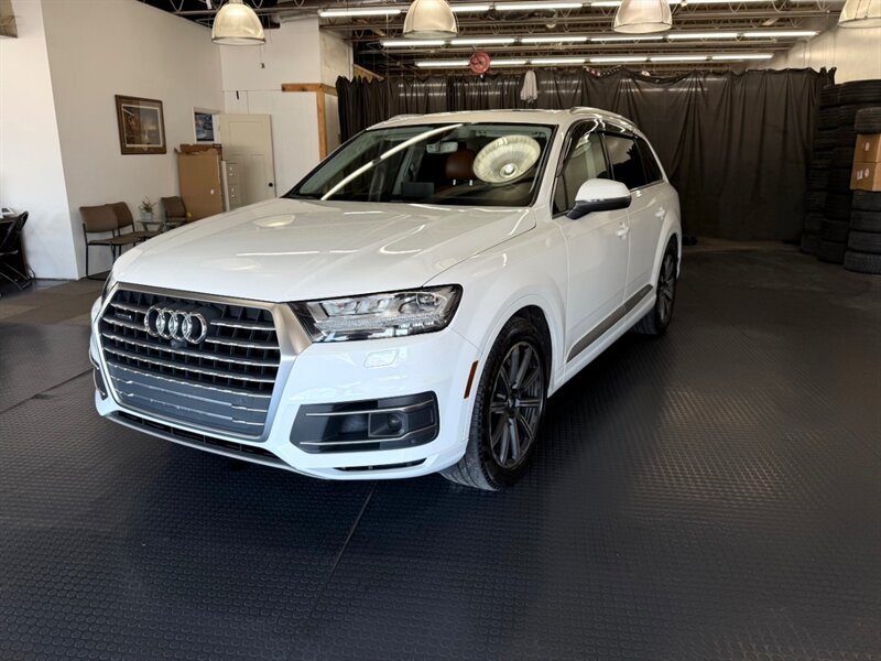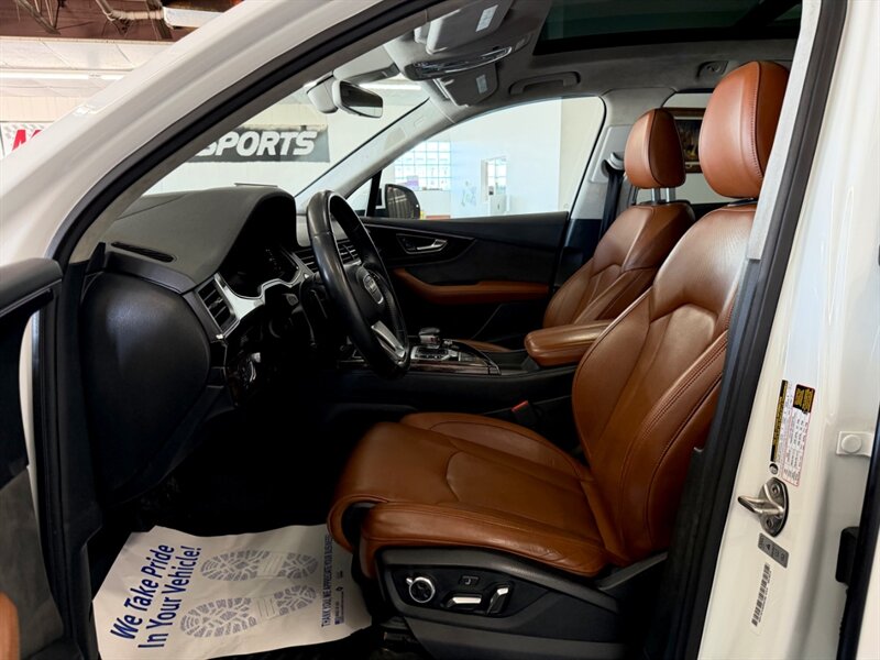 2017 Audi Q7 3.0T quattro Prestige — Carrara White exterior with Cedar Brown Alcantara and premium leather interior. Powered by a 3.0L supercharged V6 producing 333 hp and 325 lb-ft of torque, matched to an 8-speed automatic transmission and Audi quattro all-wheel drive. This Q7 achieves an EPA rating of approximately 19 MPG city and 25 MPG highway. The vehicle is in excellent overall condition and has a clean CARFAX.