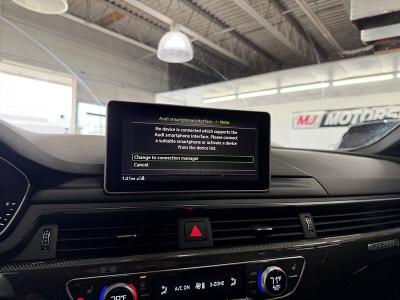 Factory equipment highlights include quattro AWD, 8-speed automatic with manual shift mode and steering-wheel paddles, Audi drive select, full LED exterior lighting, power-adjustable heated sport front seats upholstered in premium leather, dual-zone automatic climate control, keyless entry and push-button start, MMI infotainment with navigation, Bluetooth and smartphone connectivity, rearview camera with front/rear parking sensors, and a full suite of stability/traction/airbag safety systems. Vehicle is in excellent overall condition with a clean CARFAX.