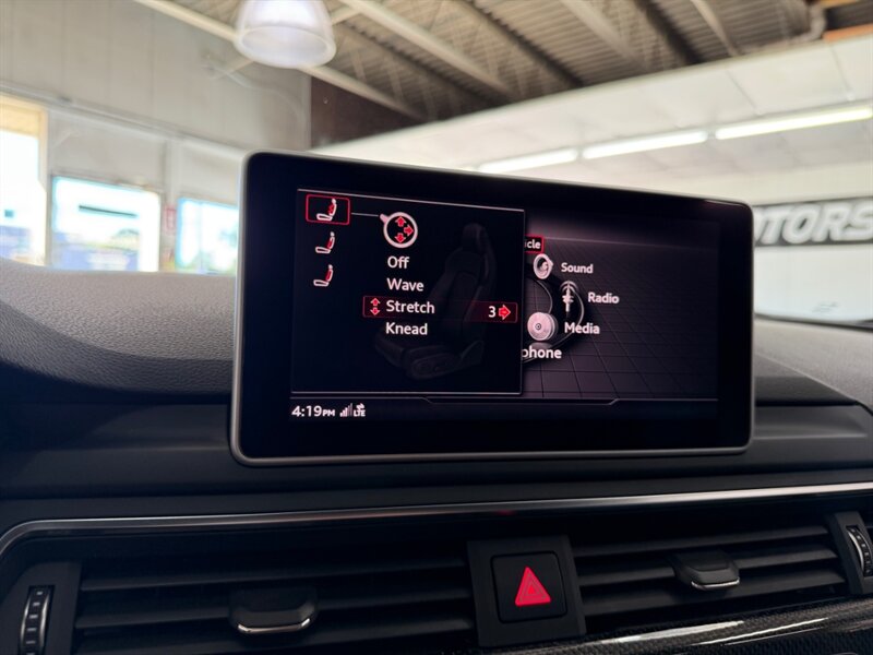 The 2018 Audi S5 Sportback 3.0T quattro Prestige comes with a powerful 3.0L Turbo V6 engine generating 354hp and 369ft. lbs. of torque. The S Sport Package enhances its performance capabilities, while the optional Glacier White Metallic Paint adds a touch of elegance to its exterior. The default features of this model include advanced technology such as virtual cockpit, MMI navigation plus with MMI touch, Audi connect services, Bang & Olufsen sound system, Audi side assist, and Audi pre sense rear. Safety features like adaptive cruise control with traffic jam assist and active lane assist are also standard. With its sleek Glacier White Metallic exterior and spacious interior, this Audi S5 Sportback has been driven less than 9,000 miles per year on average, totaling less than 66,000 miles. Boasting 21 MPG in the city and 30 MPG on the highway, it is in excellent condition and comes with a clean CARFAX report.