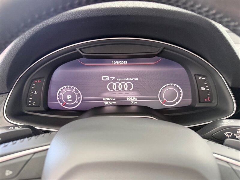 Additional optional features such as Black Exhaust Tips, Audi Beam - Rings, and Rear Seat Entertainment Prep elevate the driving experience. With under 63,000 miles—averaging less than 9,000 miles per year—and impressive fuel efficiency of 19 MPG in the city and 25 MPG on the highway, this Q7 is in excellent overall condition and comes with a clean CARFAX report. Experience the perfect blend of luxury, technology, and performance in this remarkable Audi Q7.
