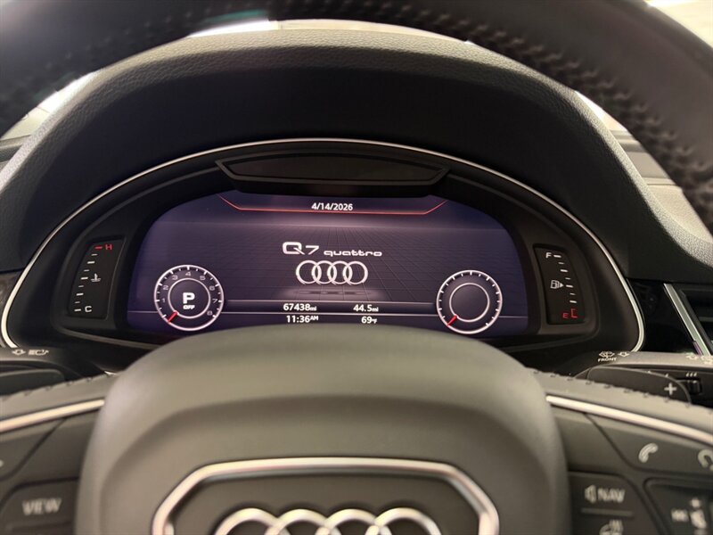 2019 Audi Q7 quattro Prestige 55 TFSI in Black with Black leather interior, powered by a 3.0L supercharged V6 (329 hp, 325 lb-ft). Prestige factory equipment includes quattro all-wheel drive, Audi Virtual Cockpit digital gauge cluster, MMI Navigation Plus with touch input, Bang & Olufsen premium sound, matrix-design LED headlights, panoramic sunroof, adaptive air suspension with drive select, power front seats with memory, heated and ventilated front seats, top-view camera and parking sensors, adaptive cruise and advanced driver-assistance systems, and a power liftgate. Cold Weather Package adds a heated steering wheel and heated rear seats. Clean CARFAX, one owner, excellent overall condition, under 68,000 miles (averaging less than 9,000 miles/year); EPA ratings 19 MPG city / 25 MPG highway.