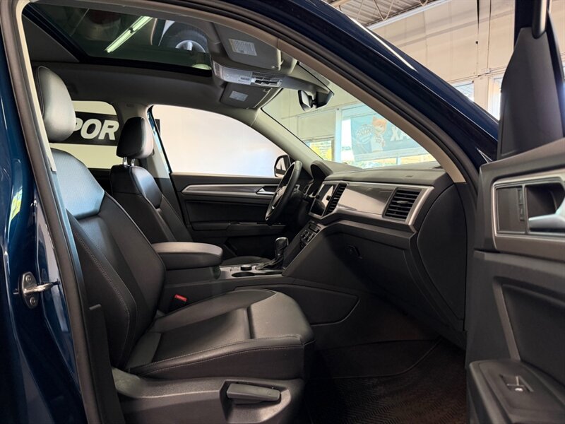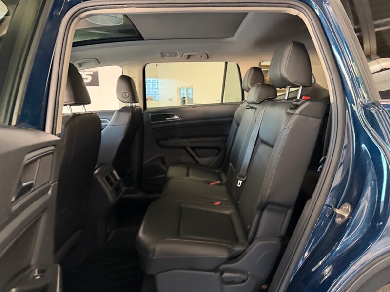 The Atlas features a striking Tourmaline Blue Metallic exterior paired with a sleek Titan Black interior, creating an appealing and modern aesthetic. With the included Panoramic Sunroof Package, you can enjoy an expansive view and natural light throughout the cabin. Optional features such as the Rubber Mats Kit (Bench Seat), Rear Bumper Applique, and Roof Rack enhance both functionality and style.