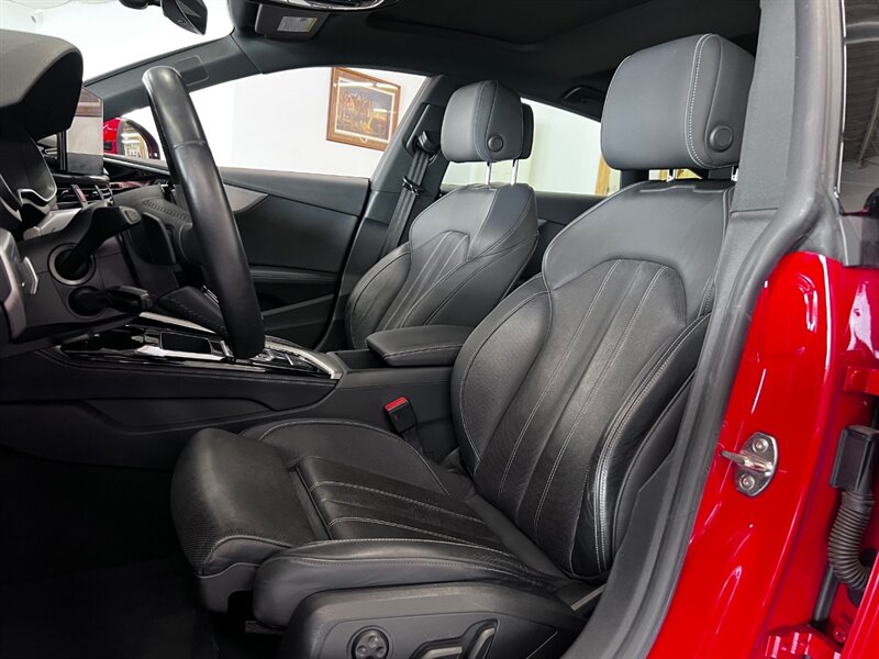 The 2020 Audi A5 Sportback quattro Premium Plus 45 T is a luxury vehicle equipped with a powerful 2.0L Turbo I4 engine producing 248hp and 273ft. lbs. of torque. This model includes the Black Optic, Cold Weather, Driver Assistance, and Luxury Packages, along with the optional Tango Red Metallic Paint. The exterior is finished in Tango Red Metallic, complemented by a Black Alcantara/premium leather interior. With a fuel efficiency of 24 MPG in the city and 32 MPG on the highway, this Audi is in excellent condition and comes with a clean CARFAX report.