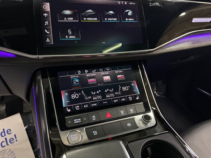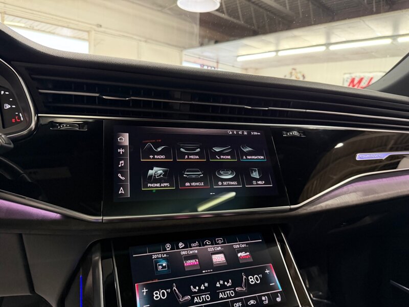 Factory equipment highlights include Audi MMI touch response with dual center touchscreens and Navigation Plus, Audi virtual cockpit digital instrument cluster, Apple CarPlay/Android Auto, Bluetooth and USB connectivity, premium leather seating with power-adjustable heated front seats and memory, tri-zone automatic climate control, panoramic sunroof, LED headlights and taillights, power liftgate, parking sensors and rearview camera, comprehensive safety systems (including Audi pre sense) and a full complement of airbags, ABS and stability control. Vehicle is in excellent overall condition.