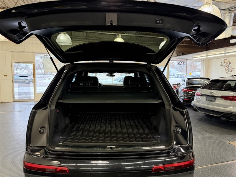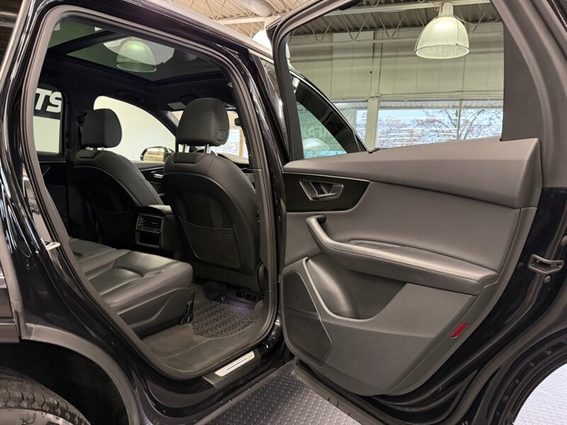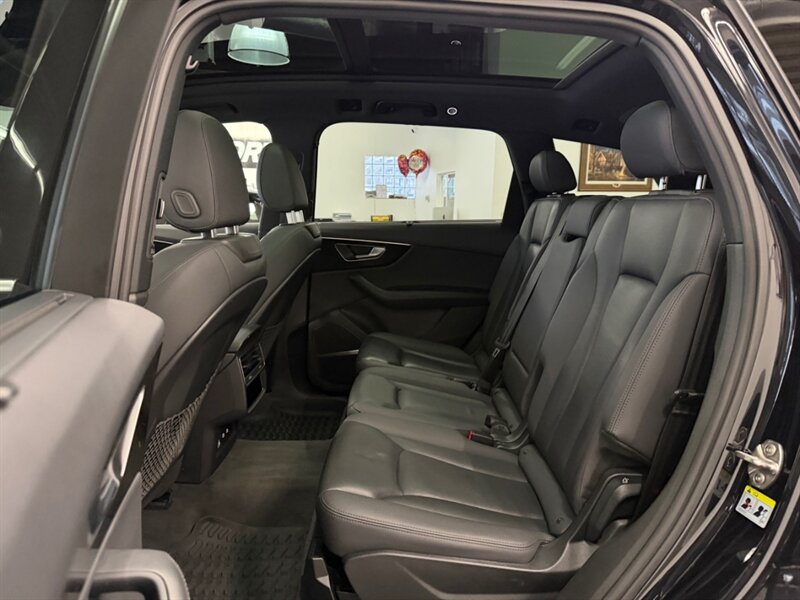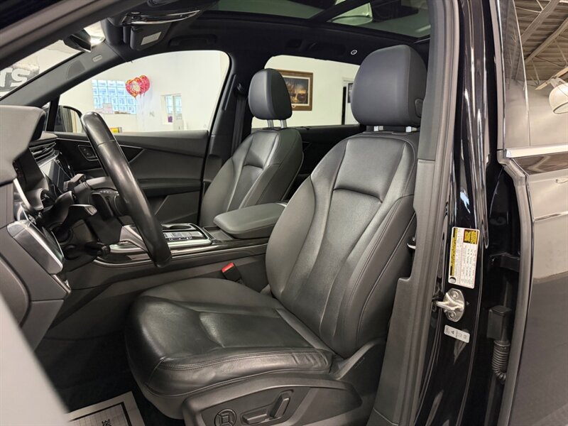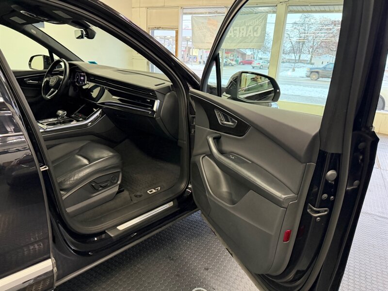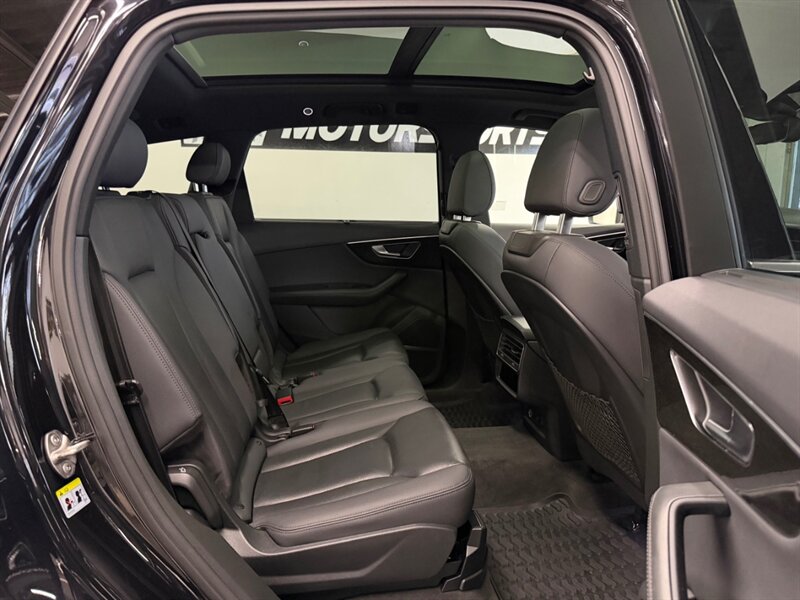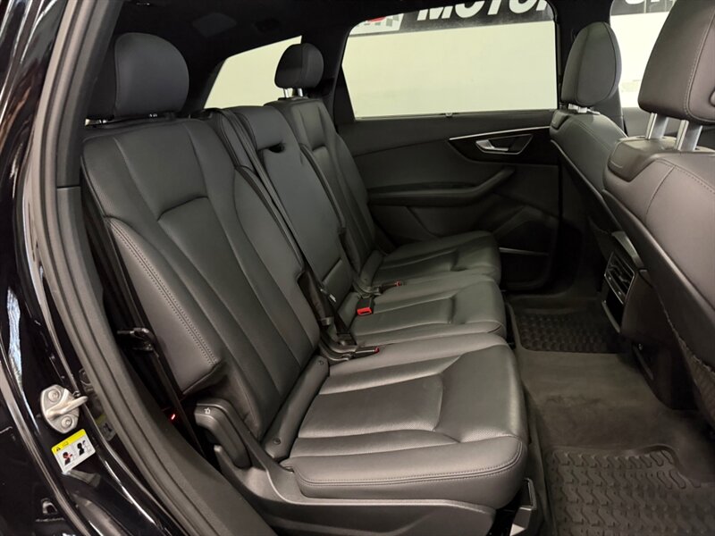 This Q7 features a sleek Night Black exterior complemented by a refined Black leather interior, ensuring both style and comfort. Standard features include Audi's renowned quattro all-wheel drive system, a panoramic sunroof, LED headlights, and a comprehensive infotainment system with navigation, Bluetooth connectivity, and a premium sound system.