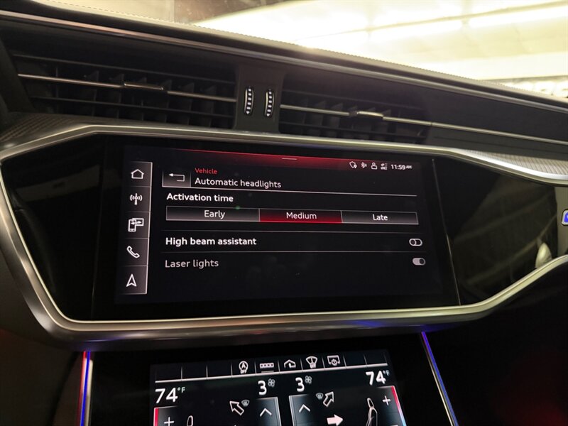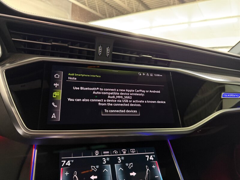 This vehicle is enhanced with several premium packages, including the Black Optic Package and Carbon Optic Package, which provide striking visual upgrades, and the Driver Assistance Package and Executive Package for added safety and convenience features. Optional enhancements such as Red Ceramic Brakes, Carbon Twill Structured Inlays, and a Sports Exhaust System with Black Finishers further elevate its performance and aesthetics. The 22-inch Audi Sport 5-V-Spoke Trapezoid Design Wheels add a bold touch to its already stunning presence.