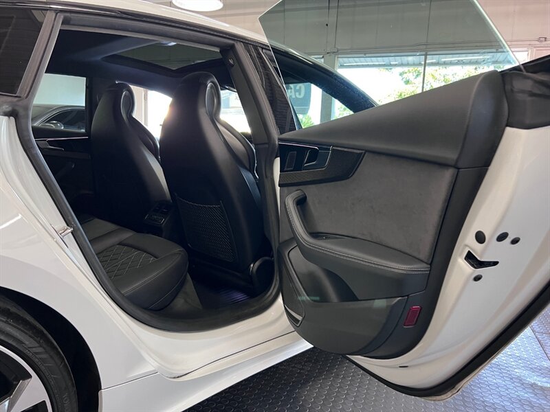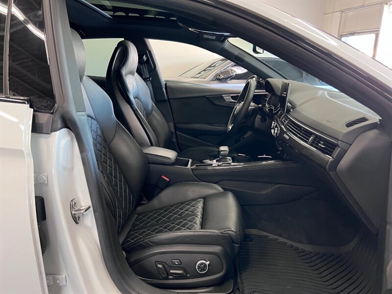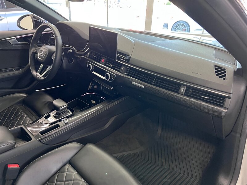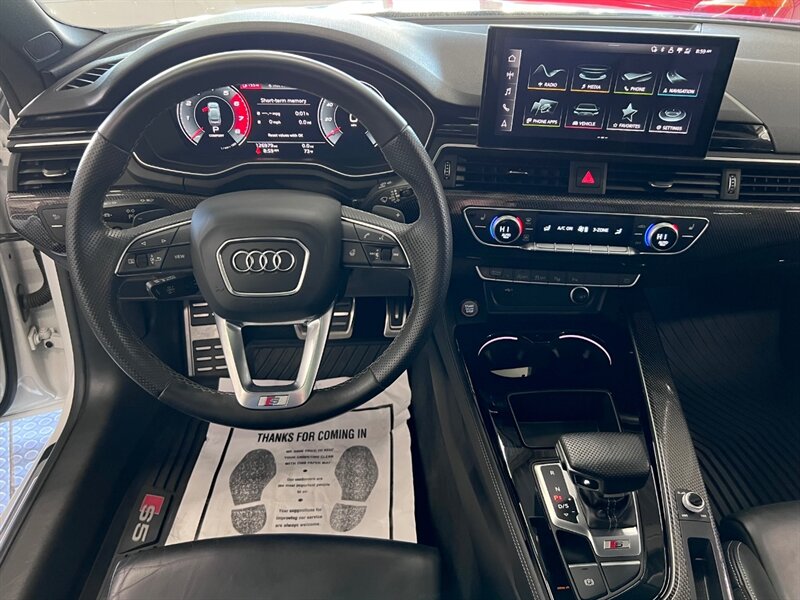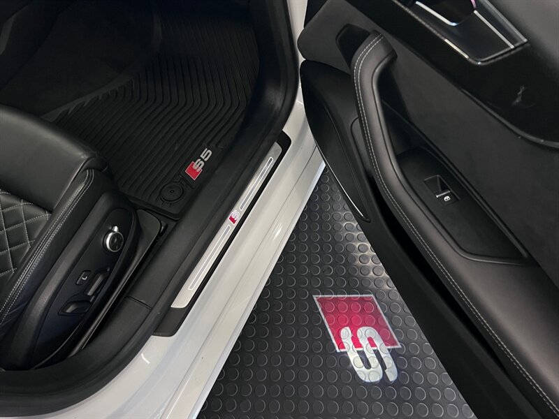 The 2021 Audi S5 Sportback 3.0T quattro Prestige is a powerful and stylish vehicle with a 3.0L Turbo V6 engine that delivers 349hp and 369ft. lbs. of torque. It comes equipped with the Black Optic Package and S Sport Package, along with optional features like Audi Guard All-Weather Floor Mats, Carbon Atlas Interior Inlays, Glacier White Metallic Paint, and Audi S Beam. The default features of this model include a stunning Glacier White Metallic exterior and a luxurious Black leather interior. With a fuel efficiency of 20 MPG in the city and 28 MPG on the highway, this Audi S5 is as efficient as it is thrilling to drive. This vehicle is in excellent condition, with a clean CARFAX report and only one previous owner.