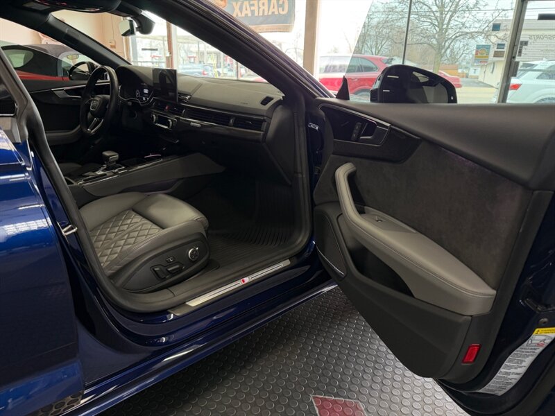 2021 Audi S5 Sportback 3.0T quattro Prestige — Navarra Blue Metallic exterior with Rotor Gray leather interior. Powered by a 3.0L Turbocharged V6 producing 349 hp and 369 lb-ft of torque paired with Audi’s quattro all-wheel drive and an 8-speed Tiptronic automatic transmission. This S5 Sportback is in excellent overall condition and delivers an EPA-estimated 20 MPG city / 28 MPG highway.