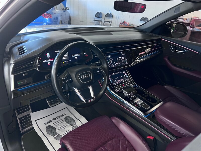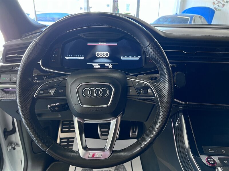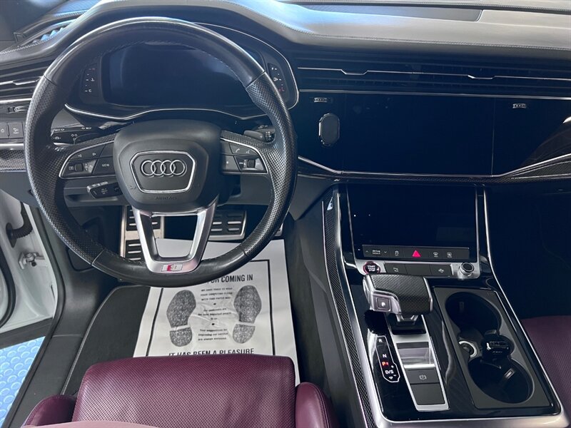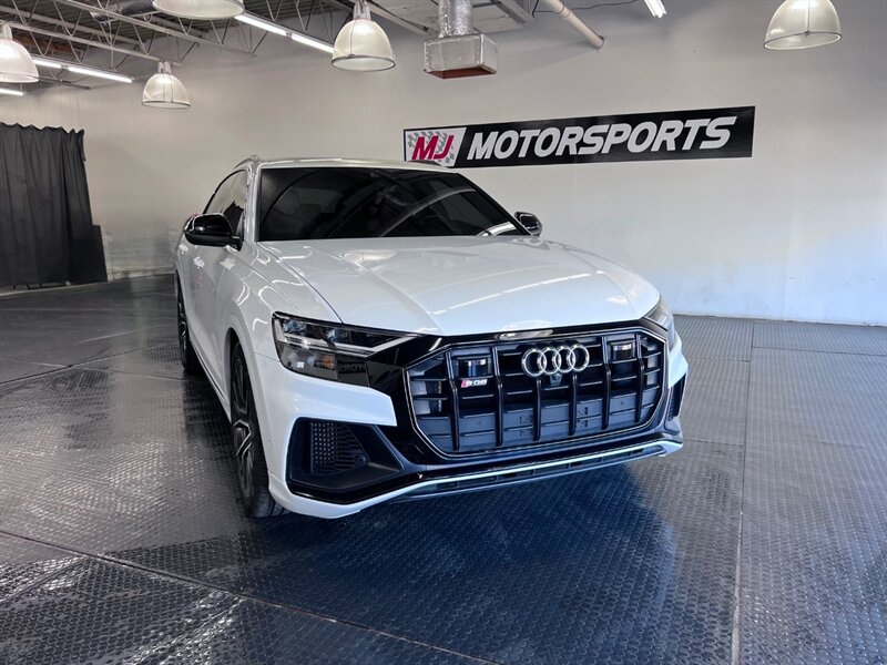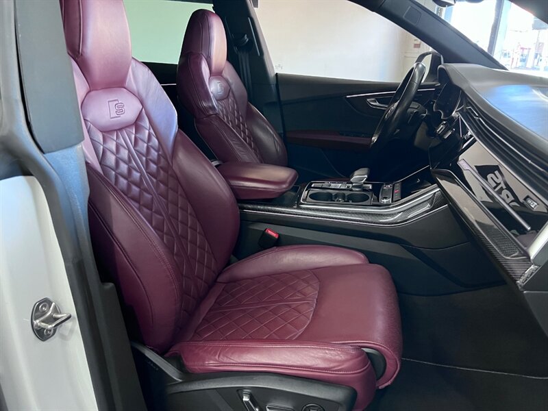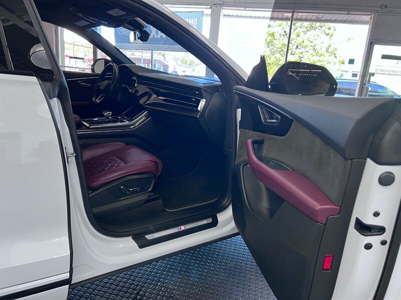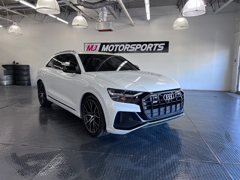 Introducing the 2021 Audi SQ8 4.0T quattro Premium Plus, a powerhouse on wheels. Equipped with a formidable 4.0L Twin Turbo V8 engine, generating 500hp and 568ft. lbs. of torque, this SUV is designed for thrill-seekers. The Black Optic Package and Driver Assistance Package enhance both style and safety. Factory default features include Carbon Vector Inlay, Black Audi Rings and Badges, and an Audi S Beam for added sophistication. The Glacier White Metallic exterior pairs elegantly with the Arras Red leather interior with Anthracite Stitching. With optional Sport Exhaust Resonator and Towing Package, this vehicle is as versatile as it is powerful. Boasting 15 MPG in the city and 21 MPG on the highway, the SQ8 delivers performance without compromise. With a clean CARFAX report and excellent overall condition, this SUV is ready to elevate your driving experience.