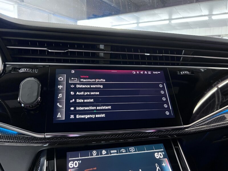 - Driver Assistance PackageIncludes Audi adaptive cruise control with traffic jam assist, turn assist, and predictive efficiency assist, Audi active lane departure warning with emergency assist, intersection assistant, traffic sign recognition, Audi pre sense rear, and Audi side assist with rear cross traffic assist and vehicle exit warning.